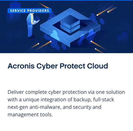 We are an authorized partner & reseller for Acronis Cyber Security They offer a single platform protecting all your workloads. Prevent client downtime and data loss with essential cyber protection. Trusted cybersecurity and the best backup for complete cyber protection.